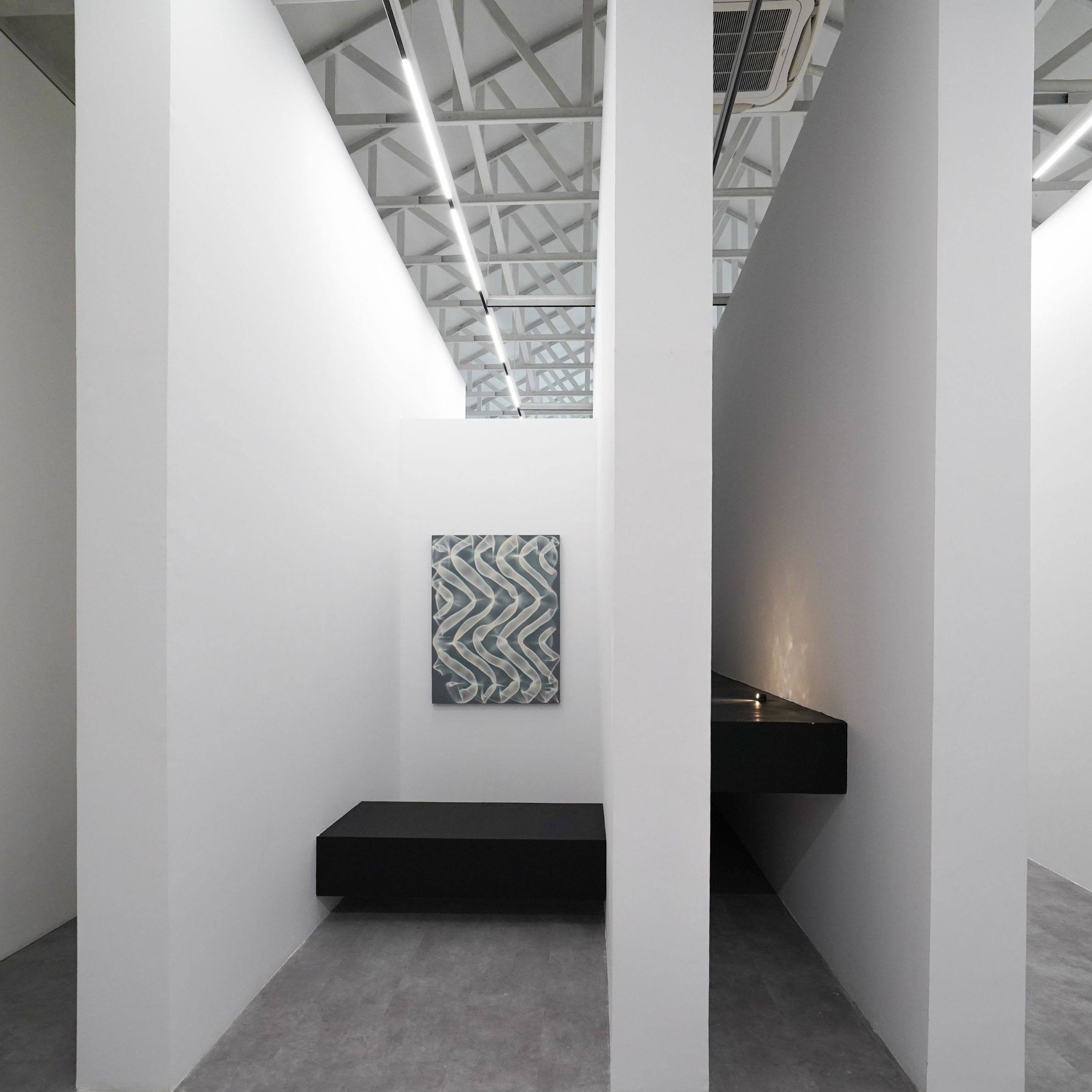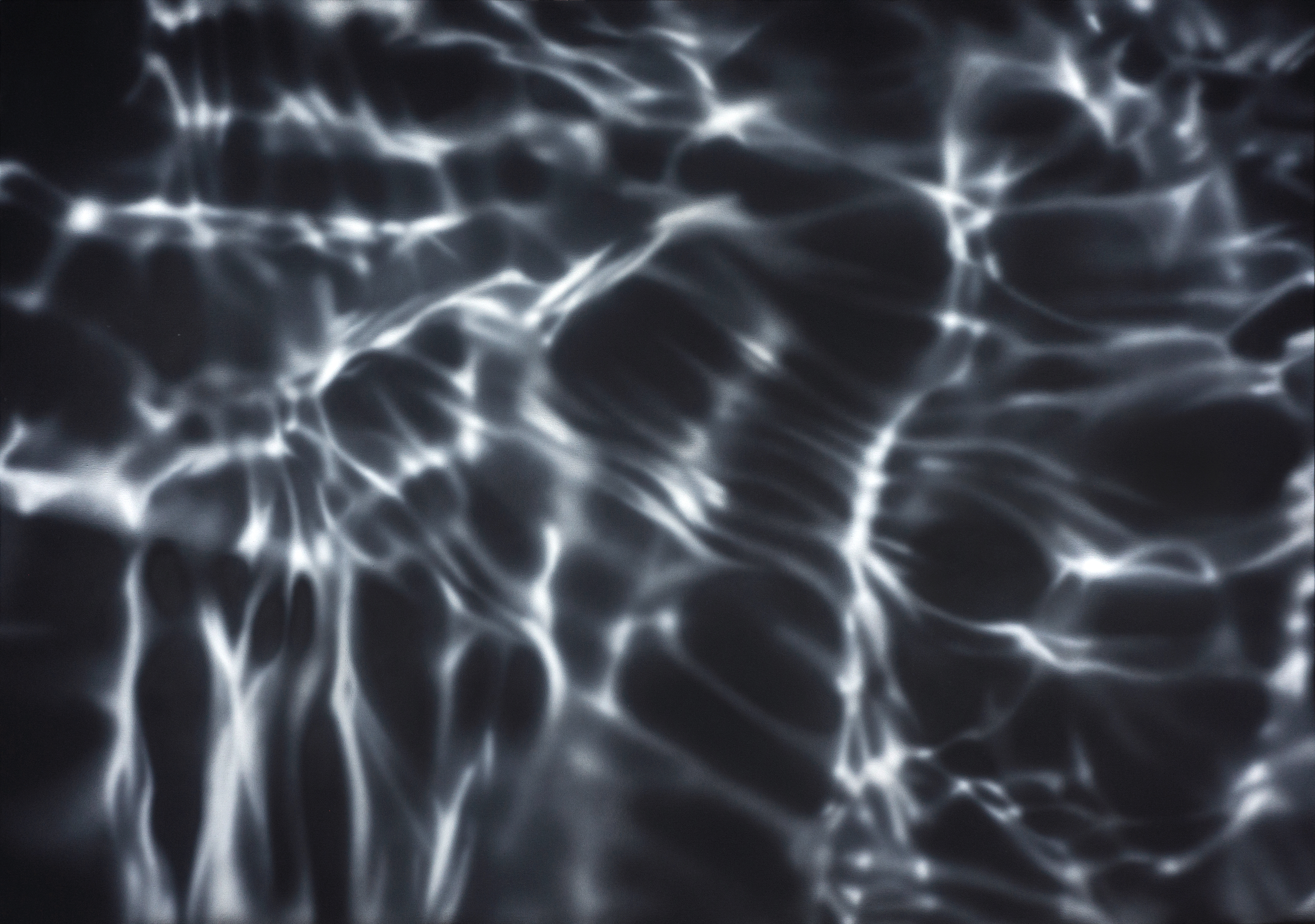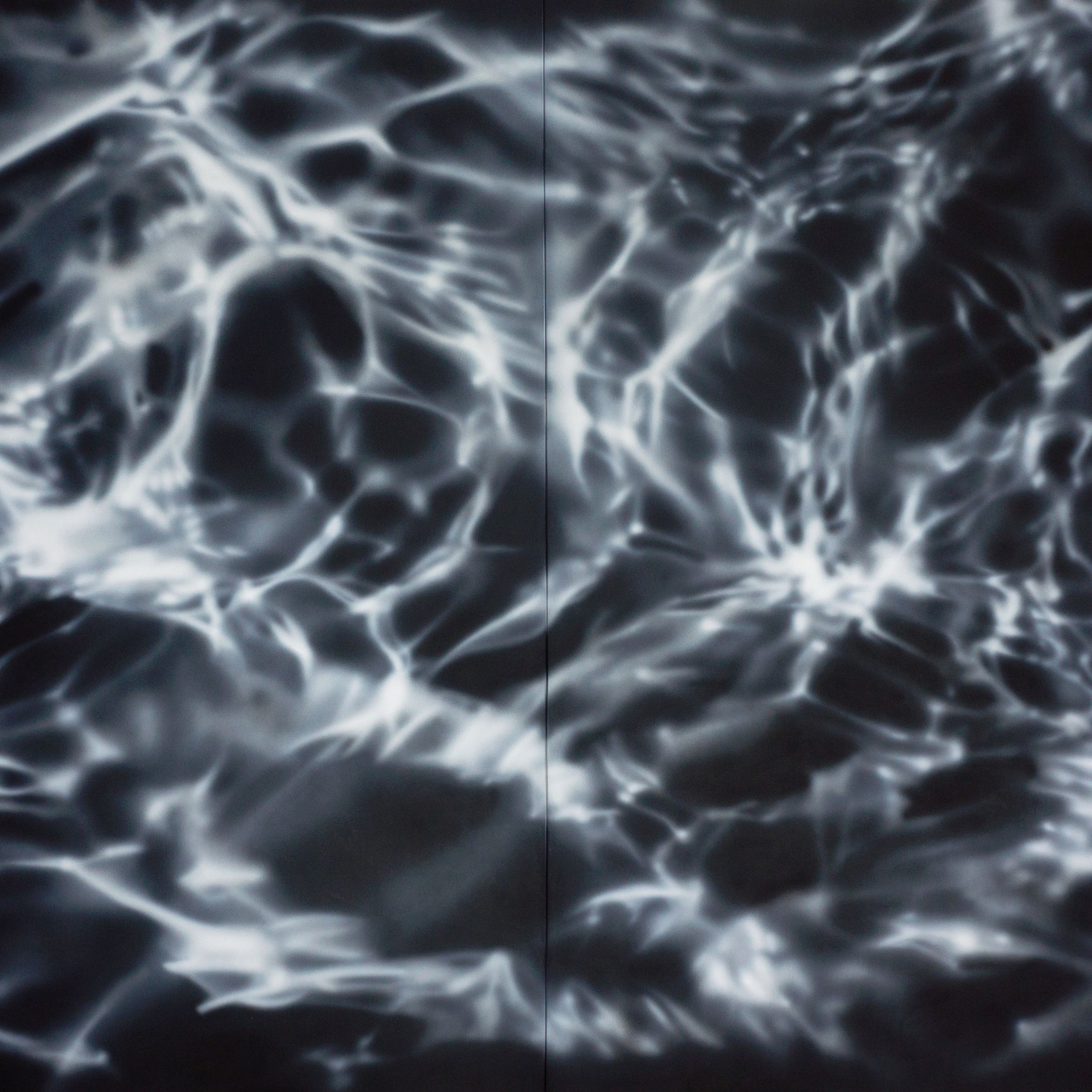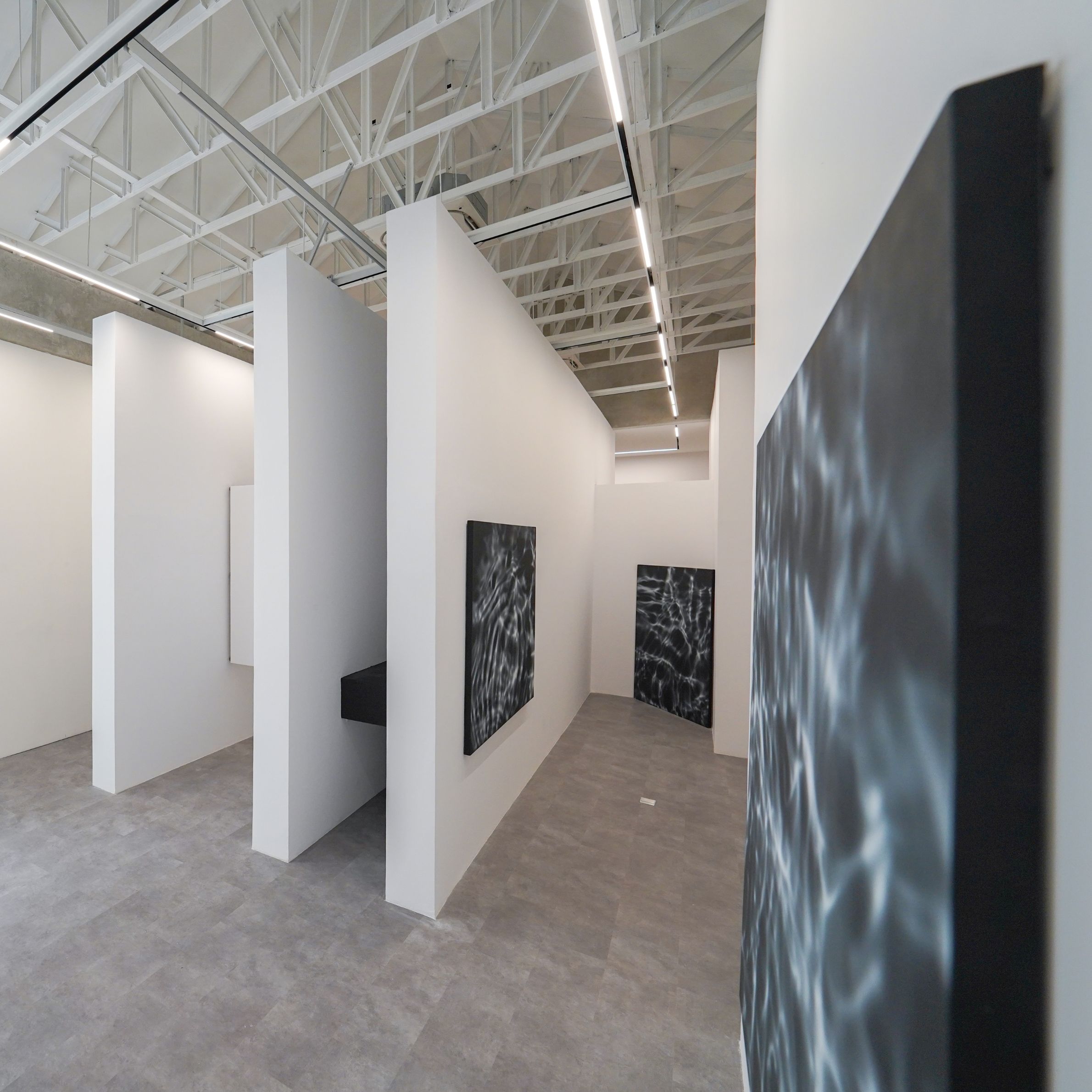 Priyoaji's fourth solo exhibition, The Stillness of Becoming, is rooted in a philosophical paradox: how can becoming contain stillness? As he continues the attempt to pause a flux, to find a still point within it. Priyoaji extends his observations of light and its interactions with the surrounding environment. While his previous series explored the play of light in natural settings, this time he turns to its encounter with man-made elements such as mirrors and rippling water. He places a mirror at the bottom of an aquarium filled with clear water and sets the water in motion. Light is then directed at the mirror, reflecting the rippling shadows that appear on the surface. Through this series, Priyoaji examines how water, though seemingly still, bends light in ways that give it both shape and motion, transforming how we perceive the object and the world around it. This body of work continues Priyoaji's ongoing exploration of how visual reality is merely a reflection of light upon surrounding objects. Resulting in monochromatic paintings, Priyoaji's works suggest that stillness is never absolute, but a pause within movement. The Stillness of Becoming gestures toward the dualities inherent in perception: light and dark, movement and stillness, the tangible and the intangible. Ultimately, the impermanence of light and the constant transformation of both natural and constructed environments remind us of the transient nature of existence, how seeing is shaped by time.