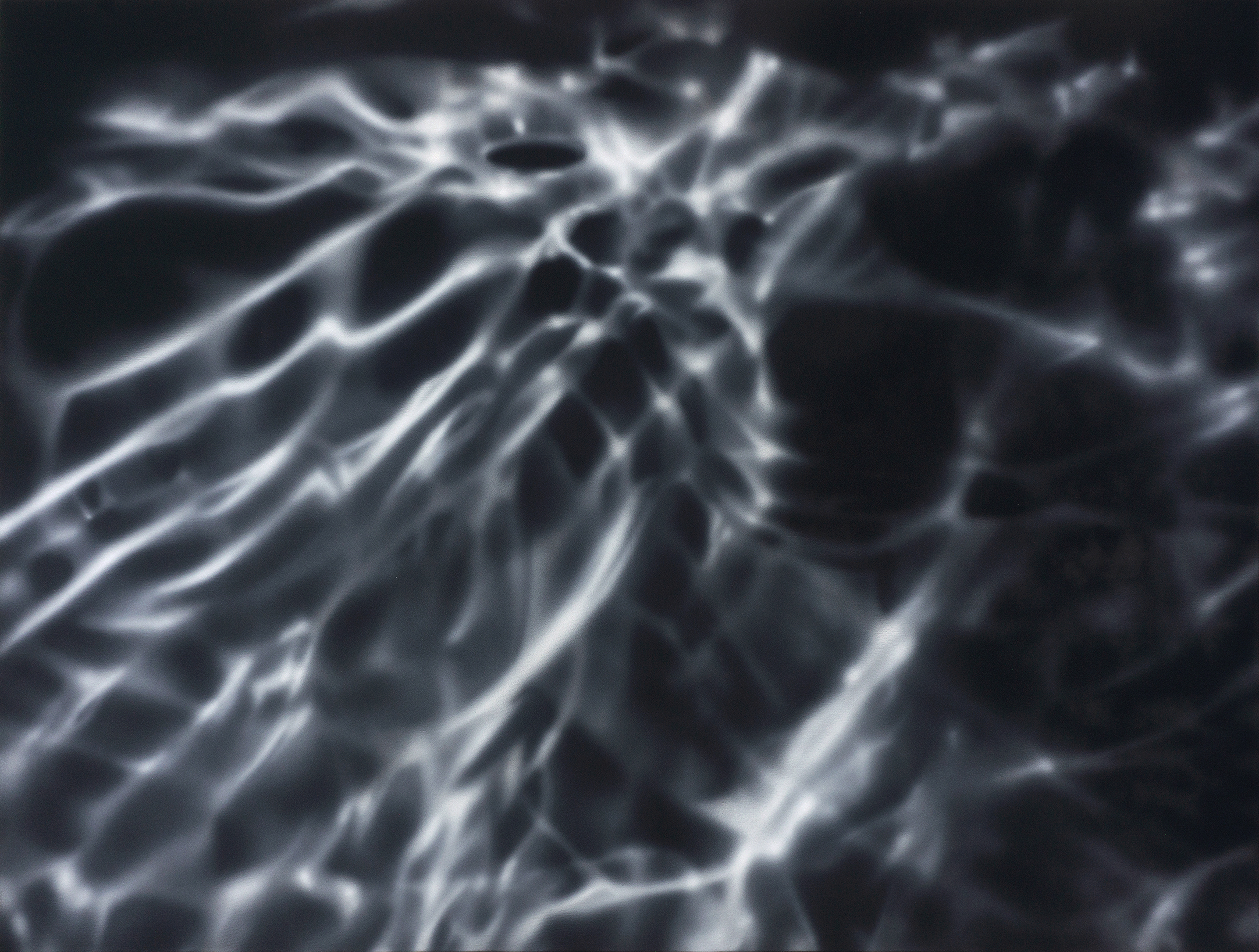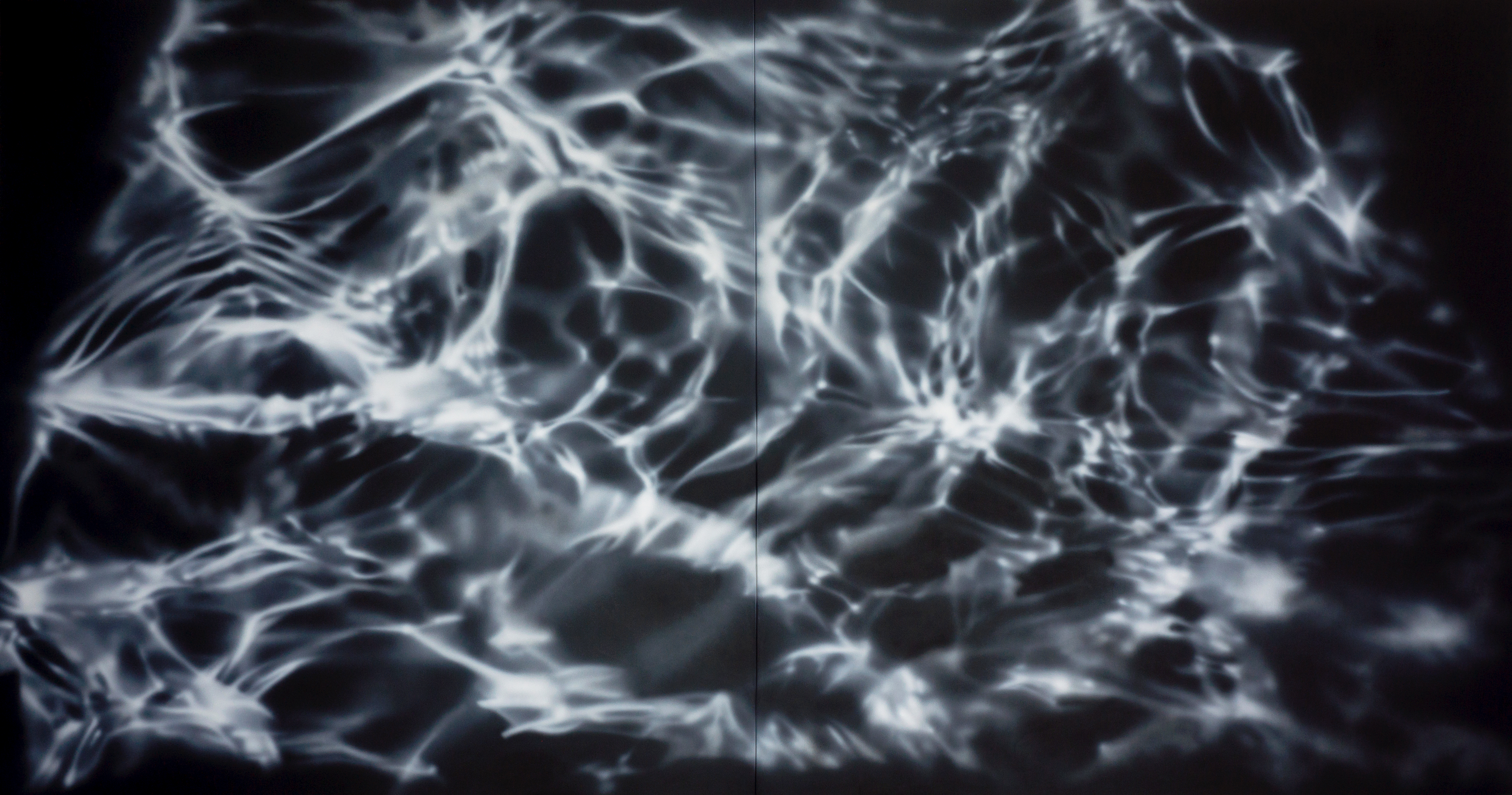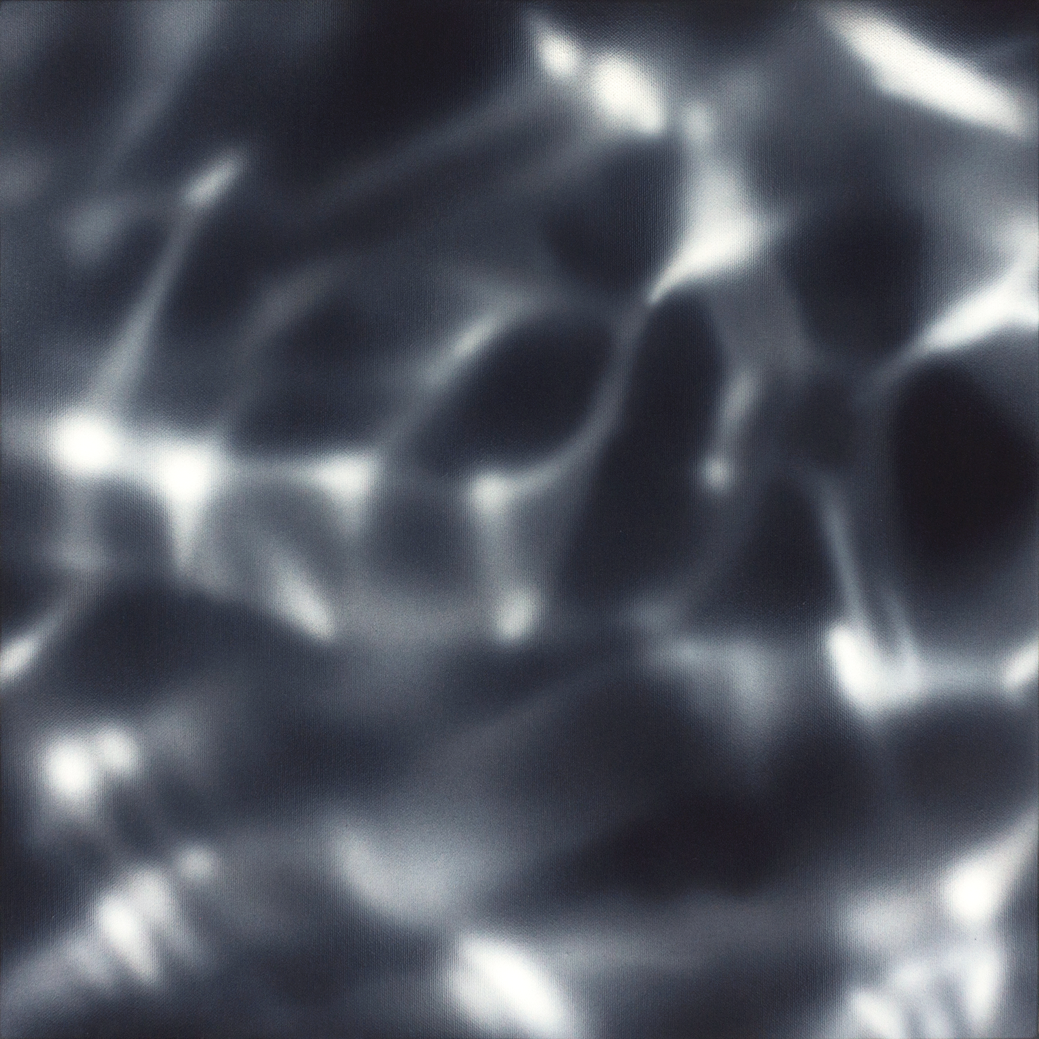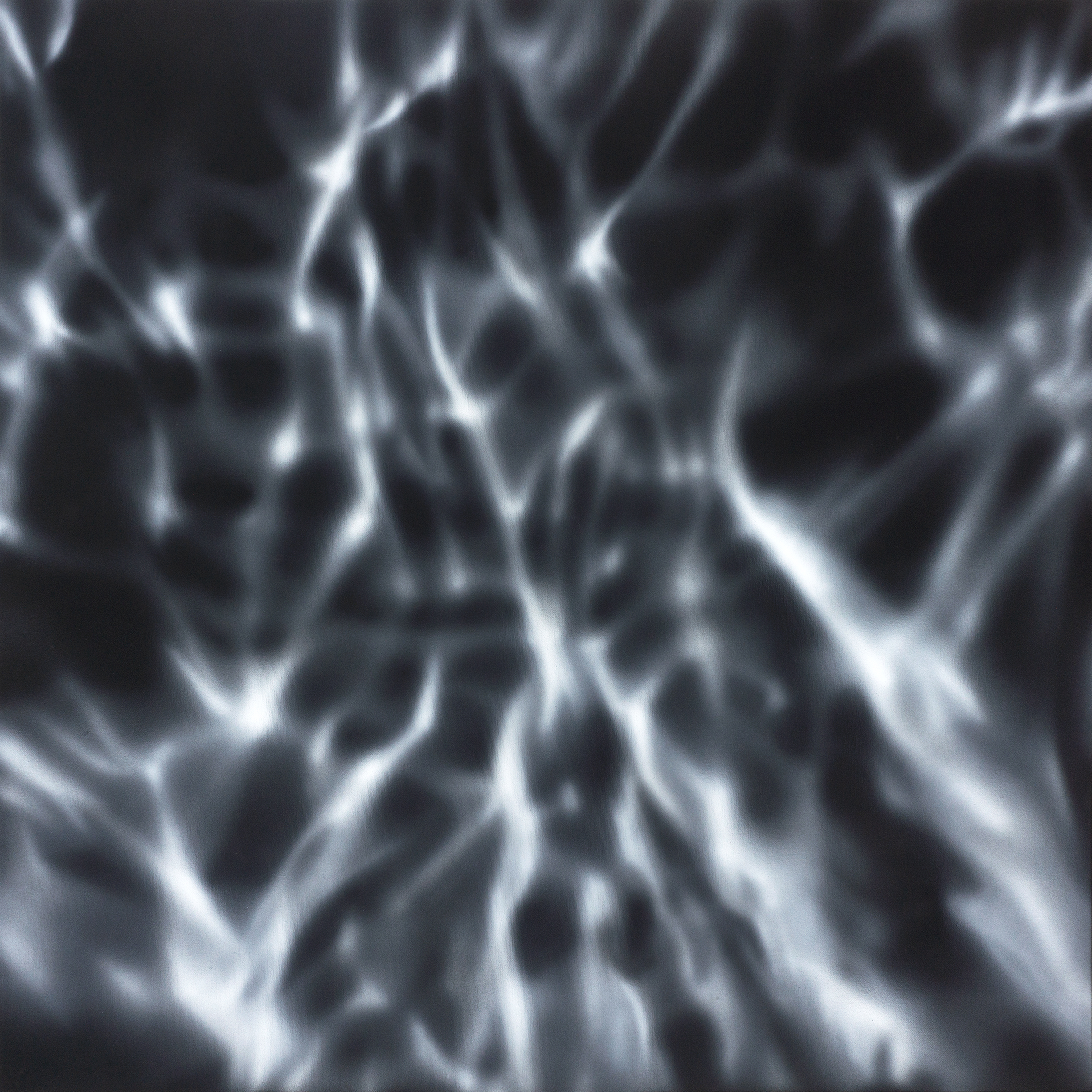 Priyoaji's fourth solo exhibition, The Stillness of Becoming, is rooted in a philosophical paradox: how can becoming contain stillness? As he continues the attempt to pause a flux, to find a still point within it. Priyoaji extends his observations of light and its interactions with the surrounding environment. While his previous series explored the play of light in natural settings, this time he turns to its encounter with man-made elements such as mirrors and rippling water. He places a mirror at the bottom of an aquarium filled with clear water and sets the water in motion. Light is then directed at the mirror, reflecting the rippling shadows that appear on the surface. Through this series, Priyoaji examines how water, though seemingly still, bends light in ways that give it both shape and motion, transforming how we perceive the object and the world around it. This body of work continues Priyoaji's ongoing exploration of how visual reality is merely a reflection of light upon surrounding objects. Resulting in monochromatic paintings, Priyoaji's works suggest that stillness is never absolute, but a pause within movement. The Stillness of Becoming gestures toward the dualities inherent in perception: light and dark, movement and stillness, the tangible and the intangible. Ultimately, the impermanence of light and the constant transformation of both natural and constructed environments remind us of the transient nature of existence, how seeing is shaped by time.