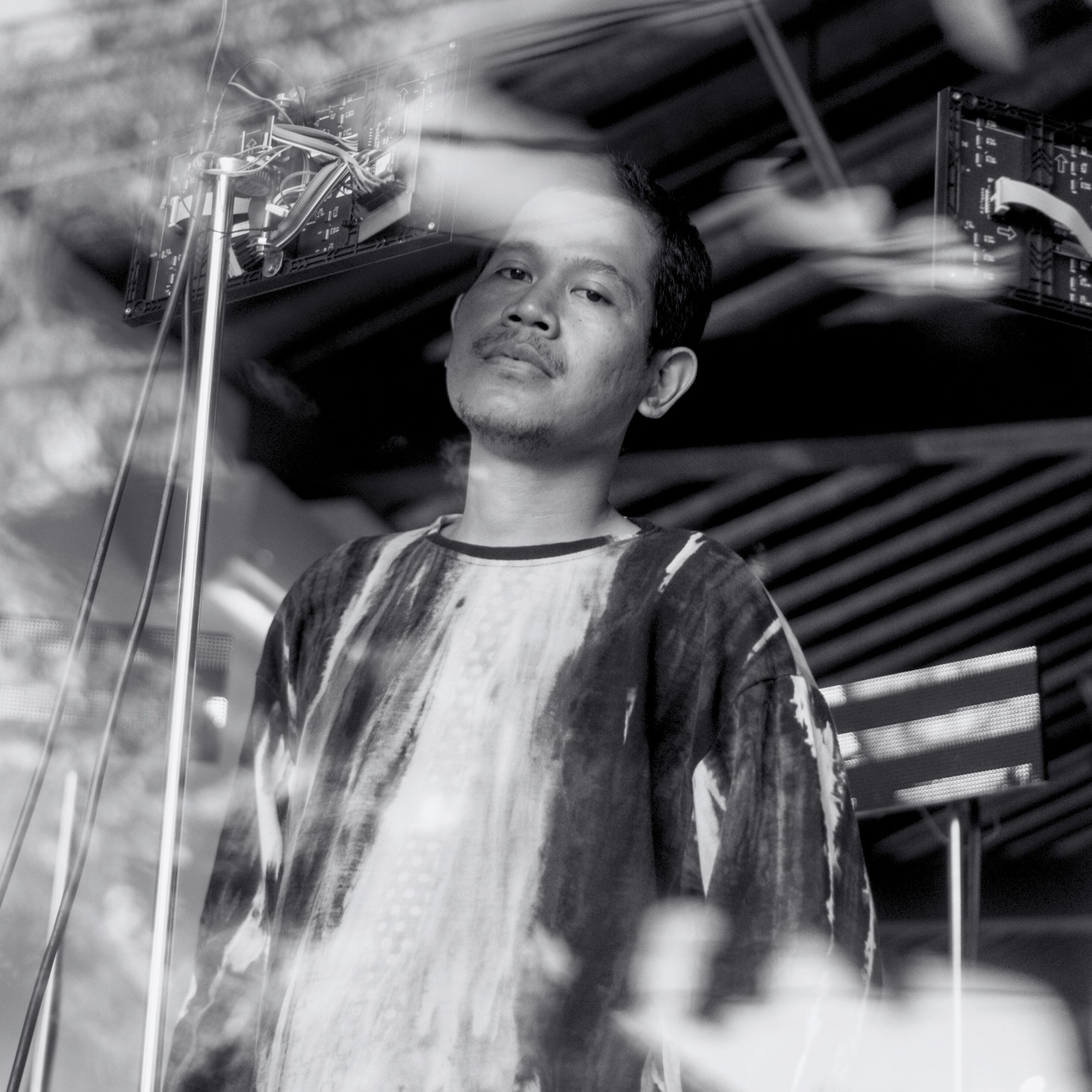 Tsay's work reconstructs the domestic as an archaeology, excavating ritual objects and gestures that reappear in layered, fragile forms. Her layered paintings and fragile assemblages question the idea of origin and continuity. By stacking, collaging, and unbuilding, Tsay's practice mimics the way memory displaces itself, slipping between clarity and delusion. Wardina's work interrogates the viability of rituals mediated through bricolage, mechanics, and digital delays. His use of low-tech electronics, salvaged objects, and handmade circuits creates a dialogue between the sacred and the profane. Both artists work within constraints, material, technical, and cultural, that serve as tools of inquiry. What unites Tsay and Wardina is their strategic embrace of constraints. Material, cultural, and technological limitations do not restrict but instead actively shape their work. How can we convey the ineffable, the intangible, through imperfect or broken media? How do we represent memory's persistence, and its inevitable loss, without resorting to nostalgia or facile metaphors?