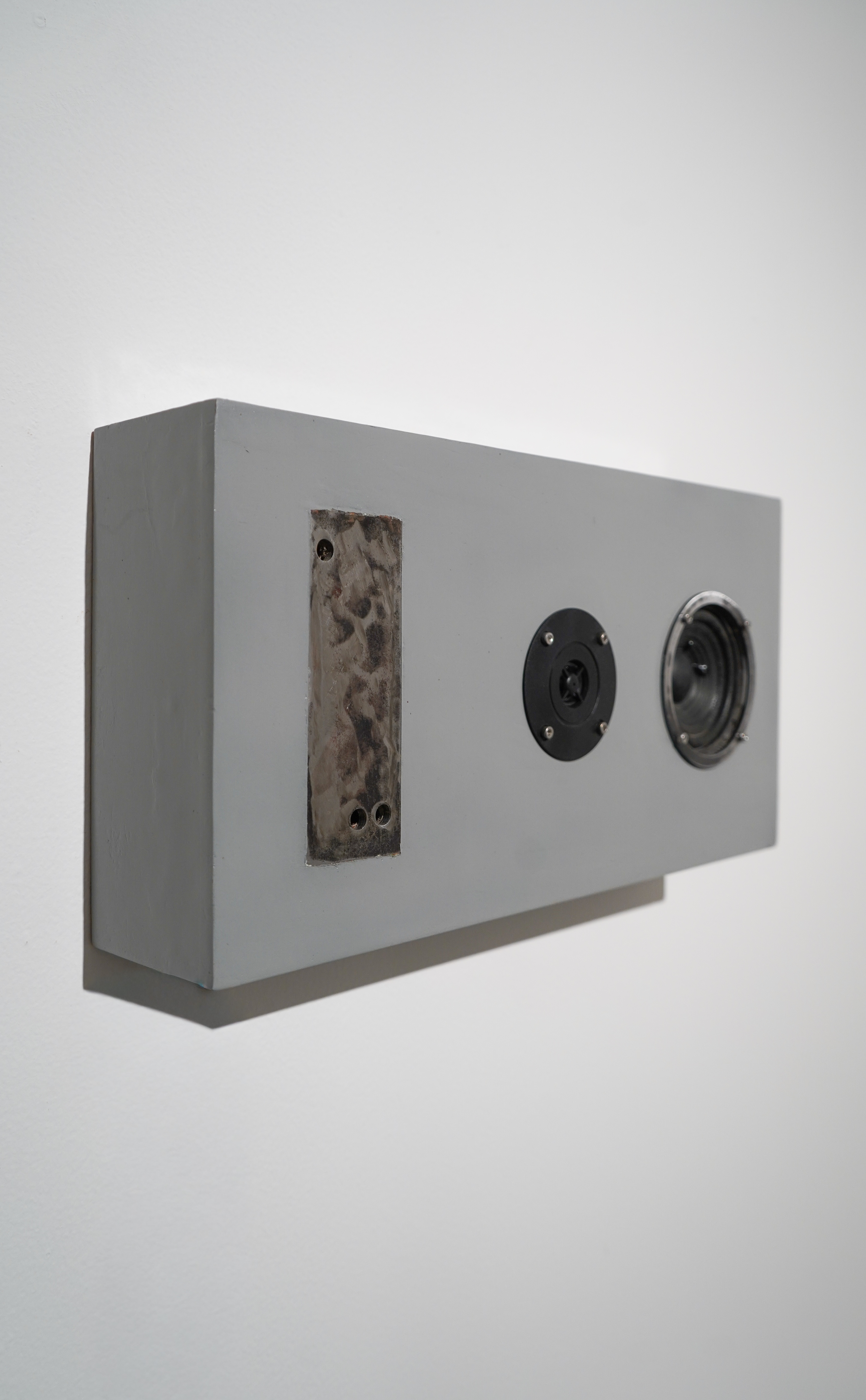 2025, iron, speaker with sound recorded looping, wood with painted finish, 50 × 25 × 10 cm