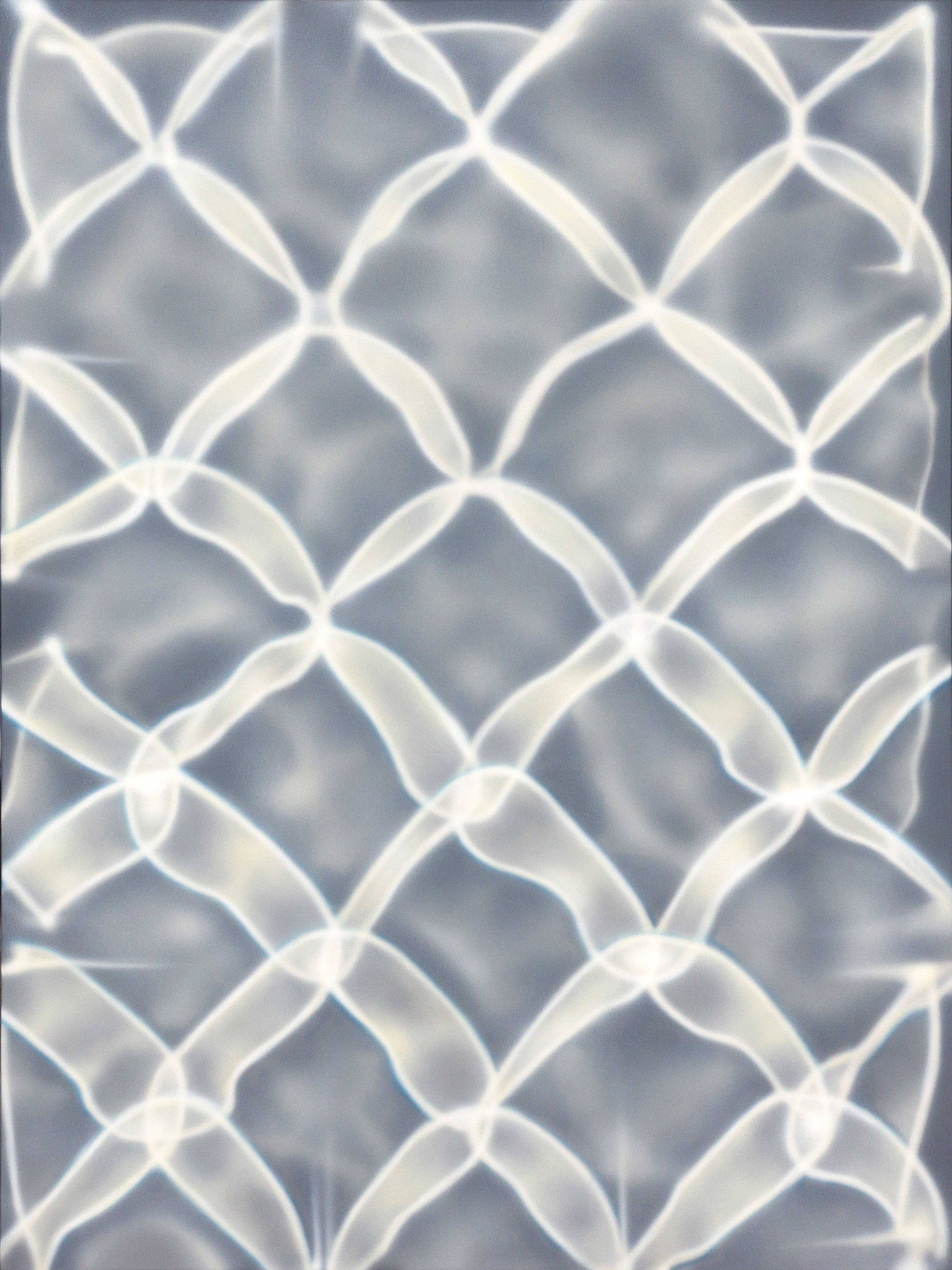 Since the early years, Condro Priyoaji's practice has always centered on capturing and transforming one nature into its opposite: the transience into the perpetual, the movement into the static. His process requires observing the fleeting and continuously unfixed until it eventually vanishes, like the interplay between light and shadow with its surrounding space, or landscape. In Absolution, Priyoaji painted the shadows cast by light seeping through window bars and trellises, creating patterns that appear solid and repetitive from one end to the other. Yet when combined with light, their consistency dissolves, giving way to a visual transformation that is gradual and constantly shifting. His other series, Ephemeral Eternity, references the Japanese concept Komorebi - the interplay of sunlight filtering through the leaves of trees – to capture the ephemerality of the shadows of foliage in Kawasan Bandung Utara (KBU) in Northern Bandung. At the same time, the work reflects on the accelerated deforestation of the area, driven by illegal logging and urban expansion.