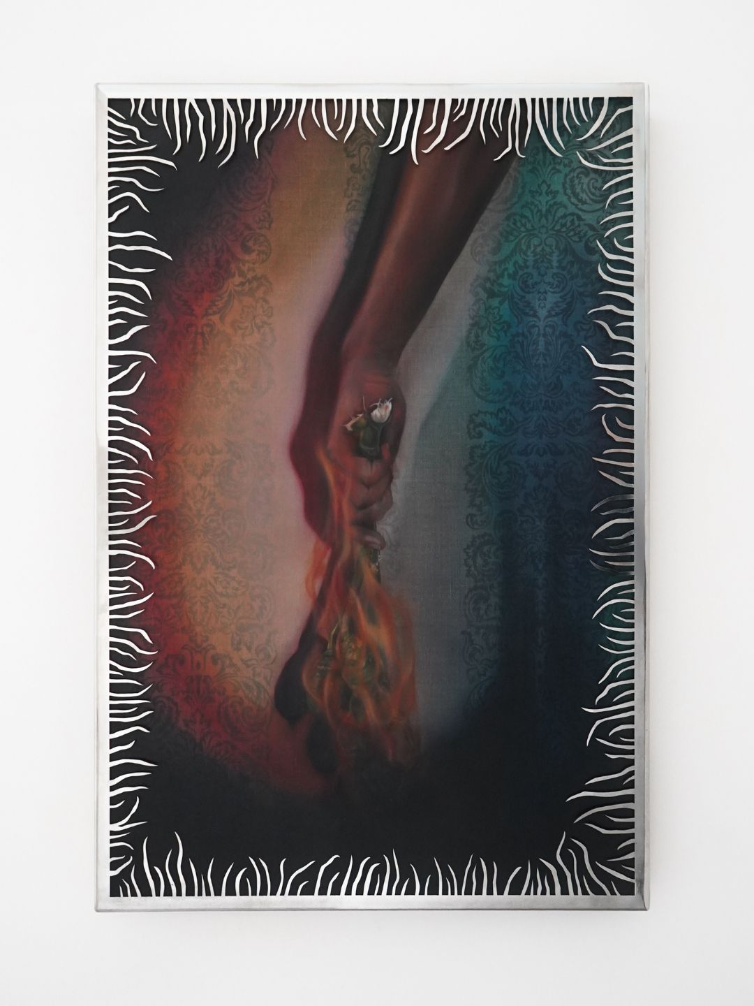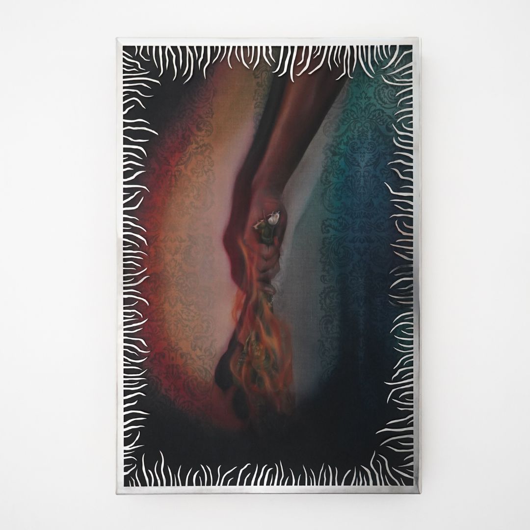 2026, oil on canvas and stainless steel frame, 101 x 68 x 4 cm (framed)