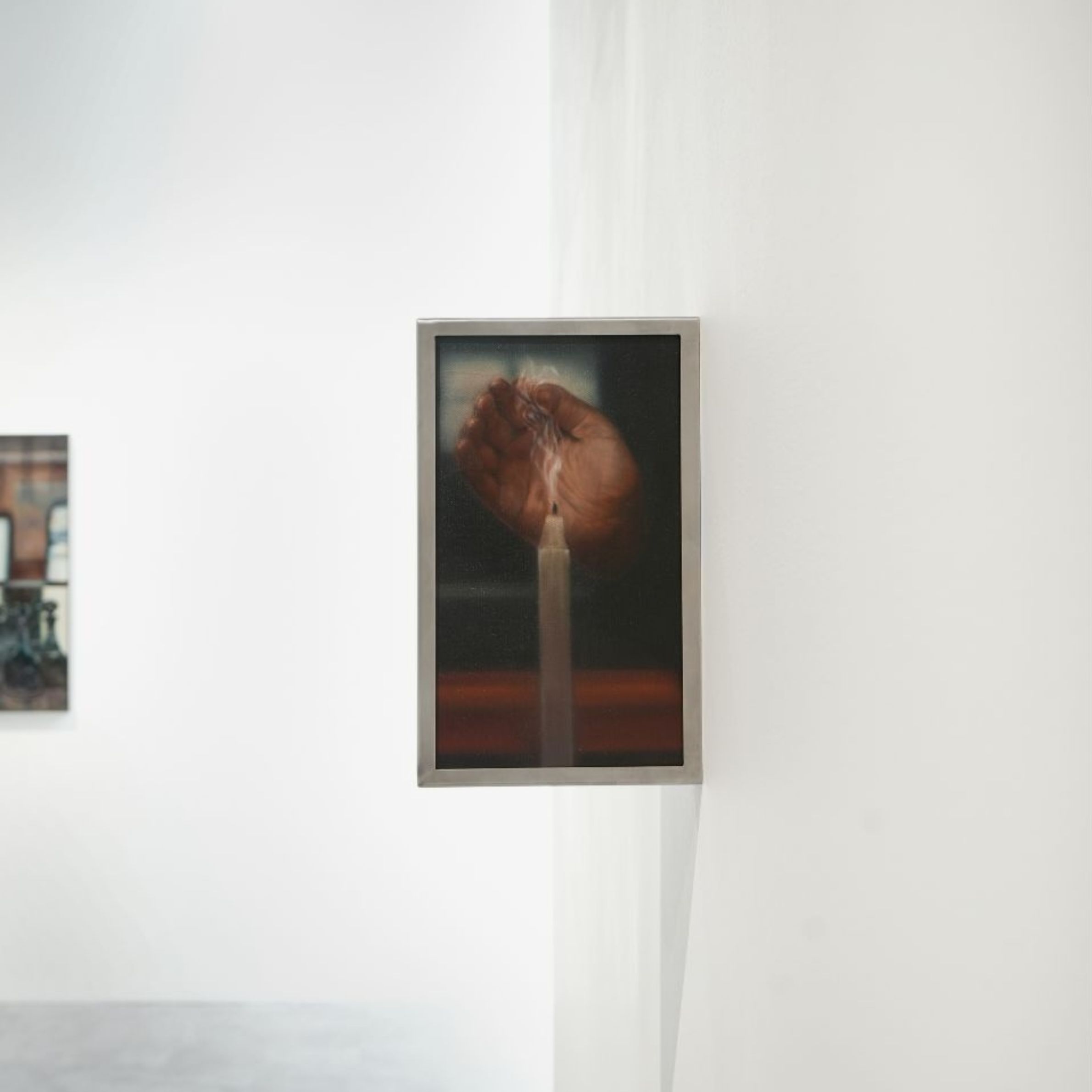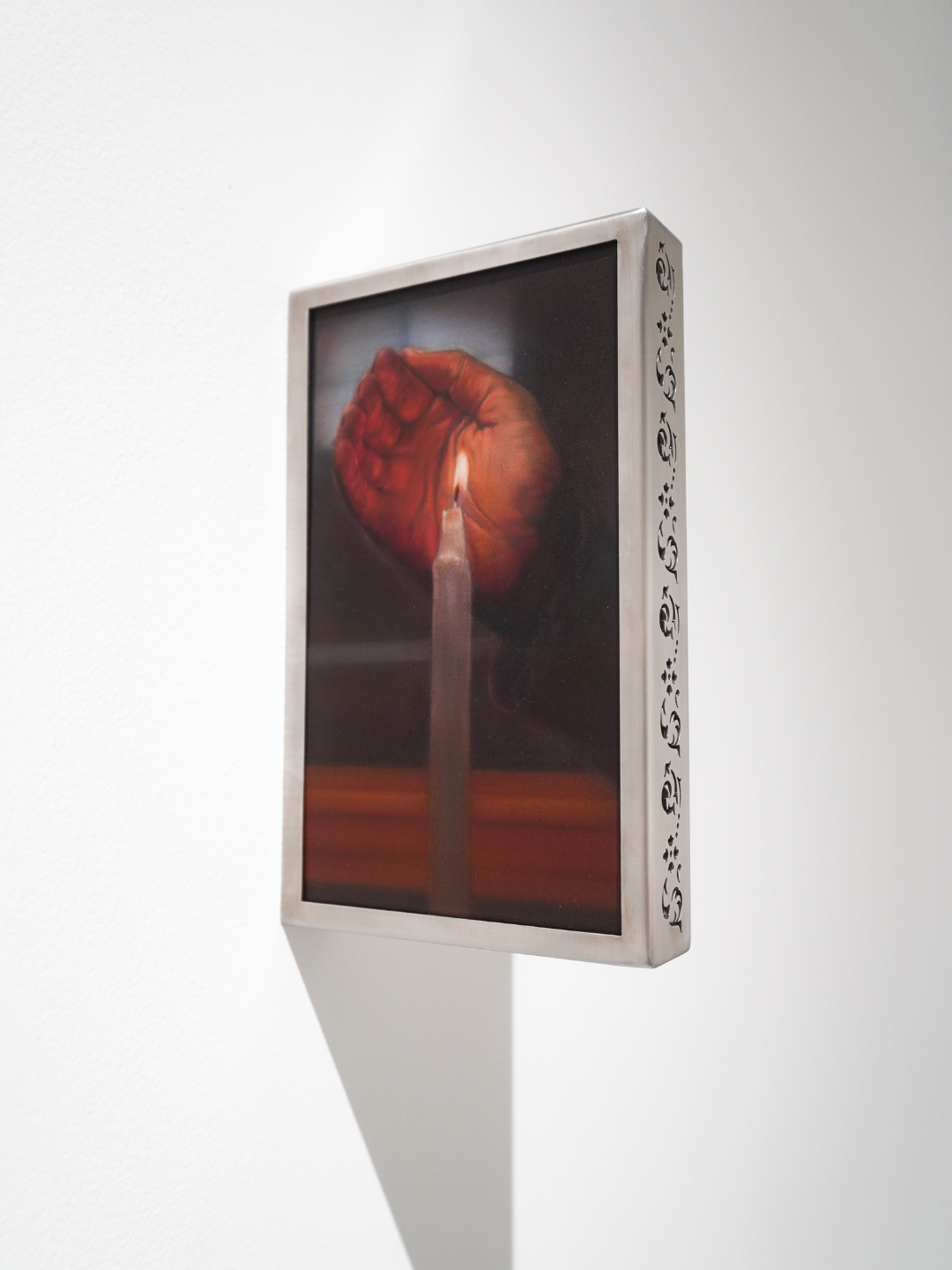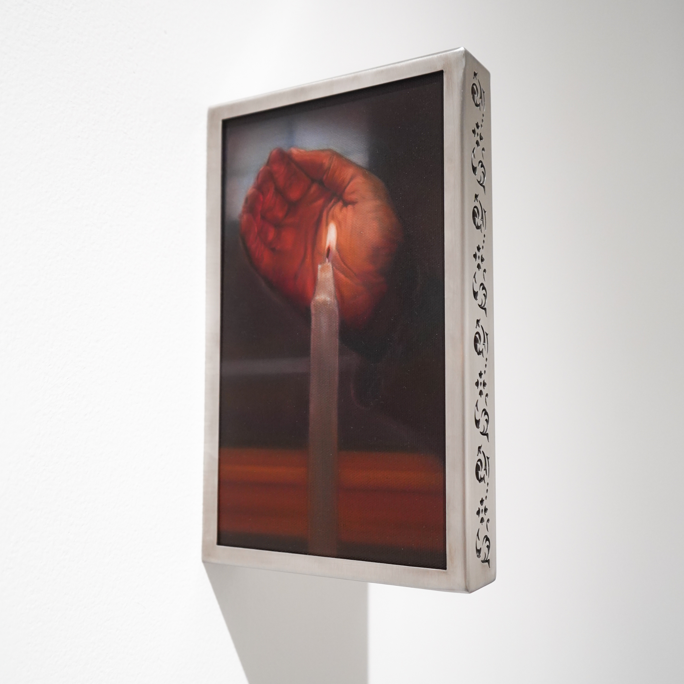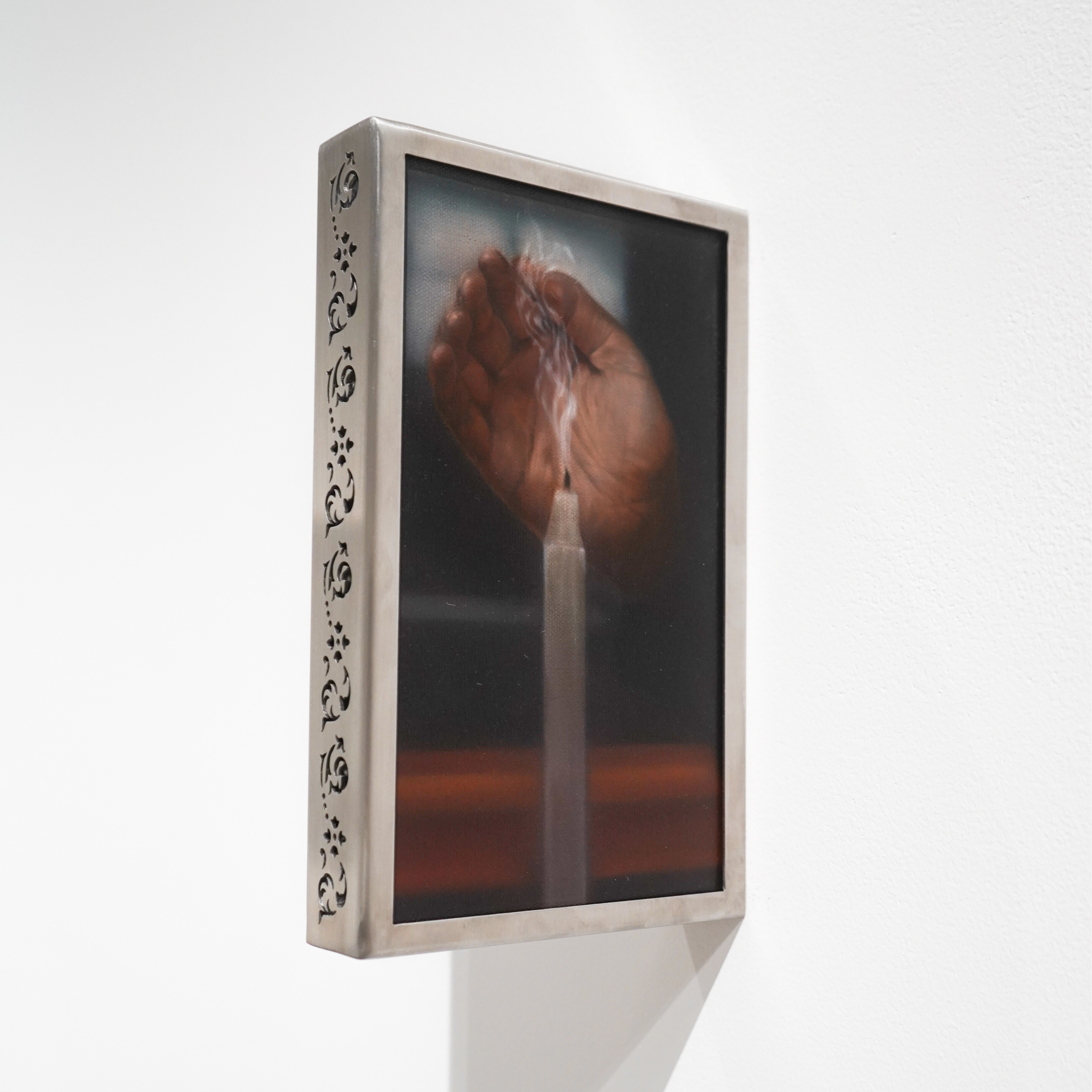 2026, oil on canvas and engraved stainless steel frame, 27.8 x 16.9 x 4 cm