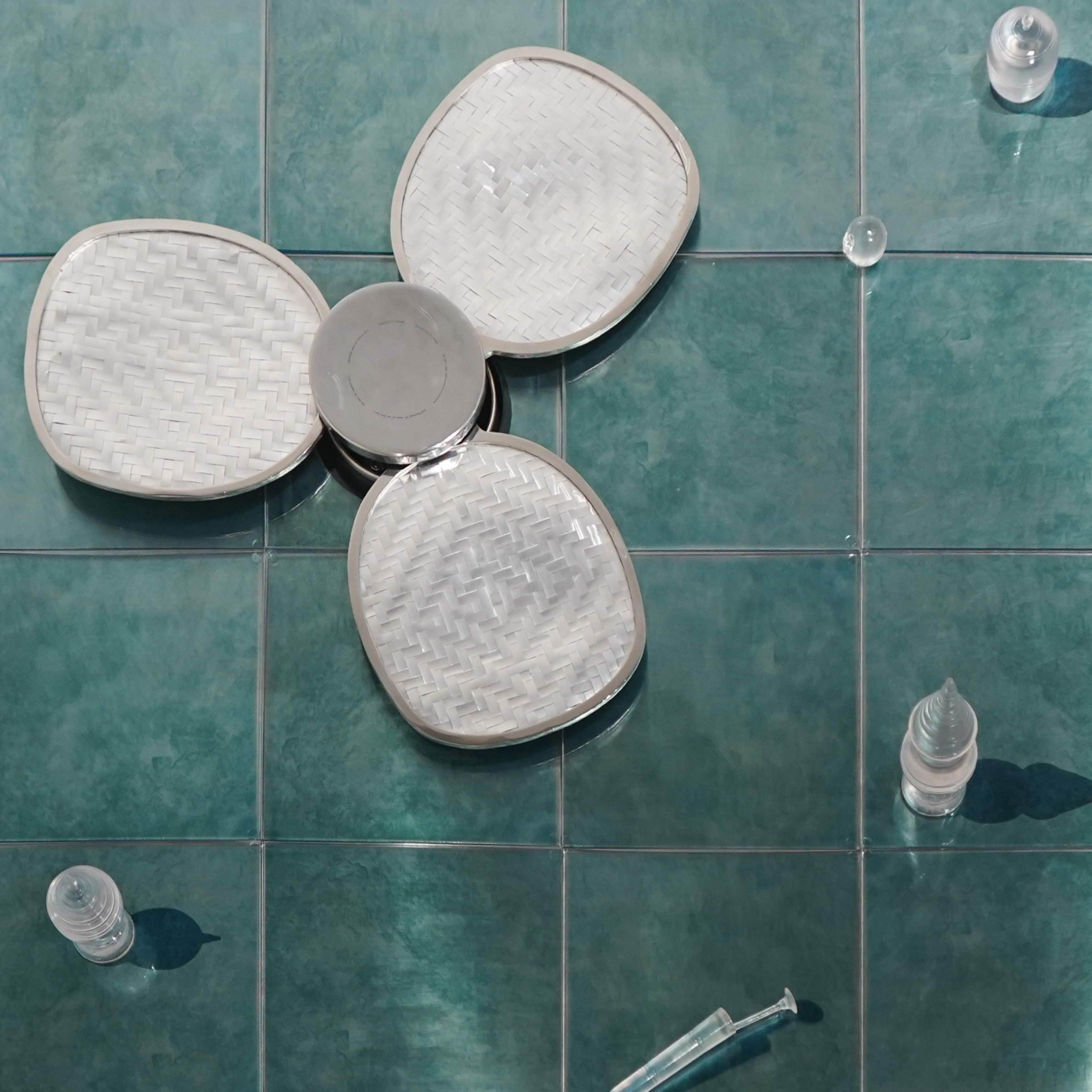 In I learned fire at her knee, Natalie transformed the traditional Thai hand fans into a system of metallic ceiling fans—only to be placed on the floor—reversing both orientation and purpose. In her childhood, when children passed in front of adults, they were expected to bow. But as a child, she would often run past, and her grandmother would lightly strike her legs with the fan she had been using to cool herself. A gesture that is at once disciplinary and affectionate, a form of care that is both tender and strict. Now, as her grandmother's memory fades, as the teeth once stained by betel chewing are gone, these recollections become what anchors Natalie to her maternal lineage, where love often means to burn and bite, contradictions she has learned, the hard way, not only to reconcile with, but also to embrace.