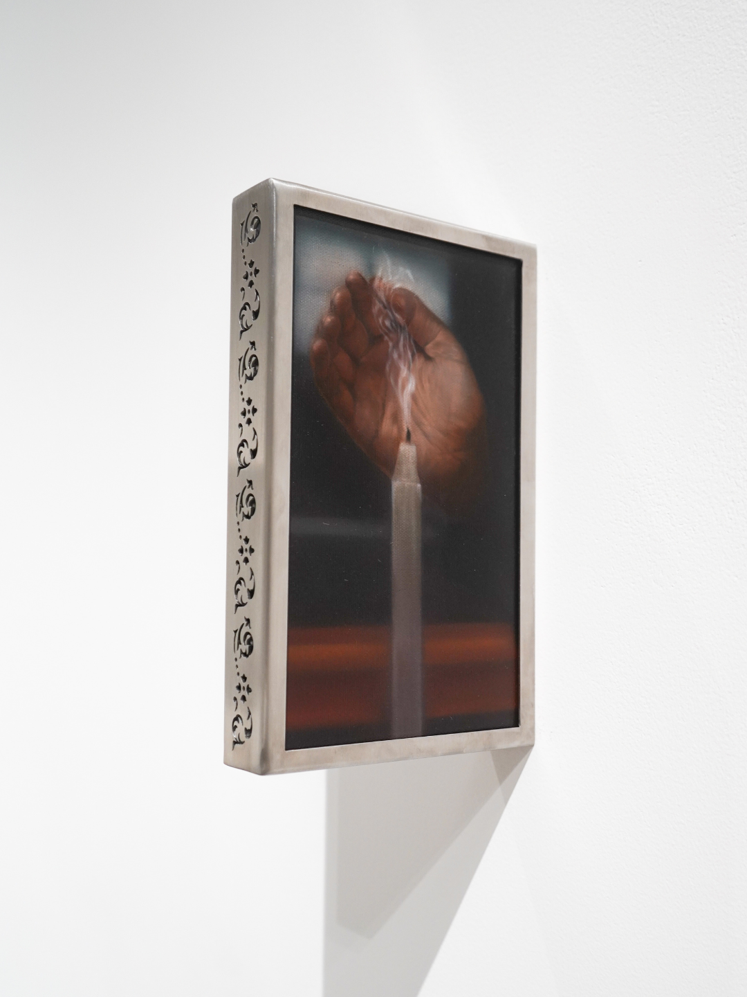 2026, oil on canvas and engraved stainless steel frame, 27.8 x 16.9 x 4 cm